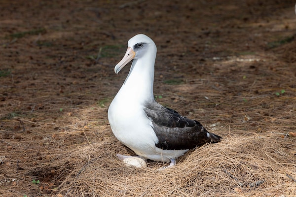 Under the translocation program USDA Wildlife Services conducts daily searches for albatross eggs on the airfield and other potentially hazardous areas of the facility and coordinates with PMRF’s natural resources team to conduct two installation-wide sweeps annually. Albatross naturally form an attachment to their nest rather than their egg so biologists are able to swap eggs found on PMRF with known infertile eggs from other sites without alarming the parents. This swap helps to reduce the number of albatross nesting in hazardous locations while bolstering the population of safer colony sites on the north shore of Kauai.
